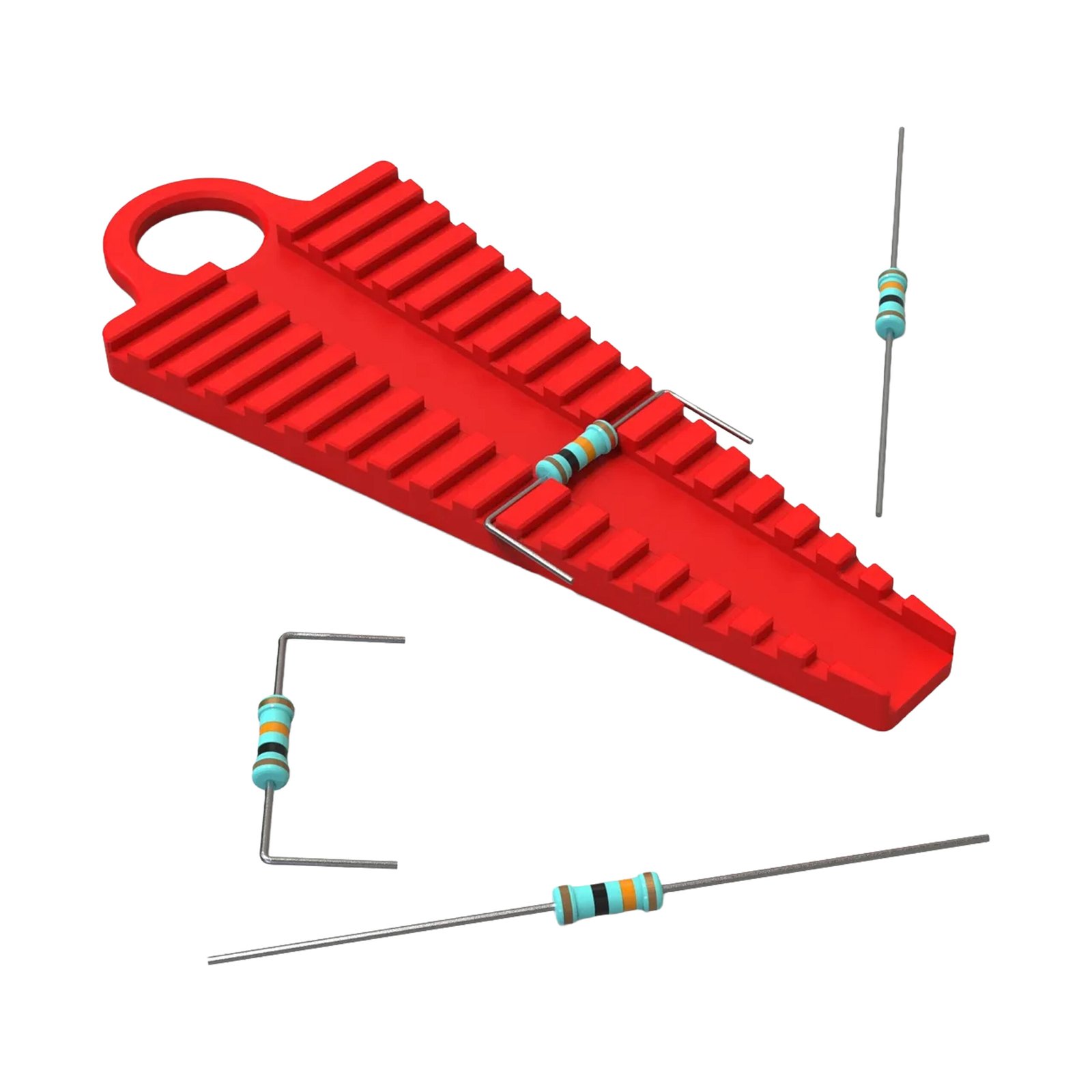 Bu direnç kablosu bükme aleti, delikli direnç ayaklarının hızlı, doğru ve tekrarlanabilir şekilde şekillendirilmesini sağlamak için tasarlanmıştır. Elektronik meraklıları, Arduino üreticileri ve yapımcılar için ideal olan bu alet, manuel ölçüm ihtiyacını ortadan kaldırır ve her seferinde temiz, profesyonel görünümlü bükümler sağlar.